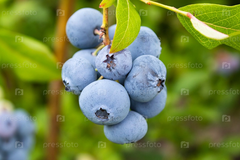 Садовый голубь вкусная, полезная ягода. Vaccinium corymbosum, высокорослый голубь. Голубые спелые ягоды на здоровом зеленом растении. Поле черники, фруктовый сад