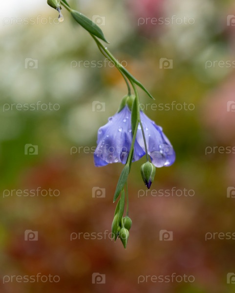 Голубые цветы льна на клумбе, лето, крупный план