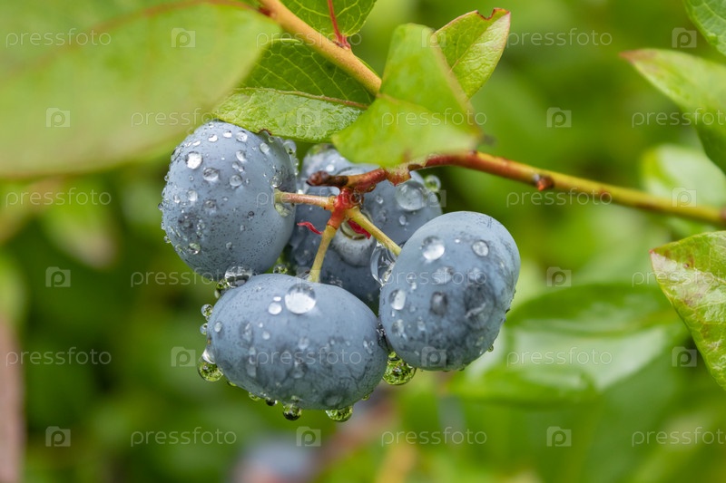 Садовый голубь вкусная, полезная ягода. Vaccinium corymbosum, высокорослый голубь. Голубые спелые ягоды на здоровом зеленом растении. Поле черники, фруктовый сад