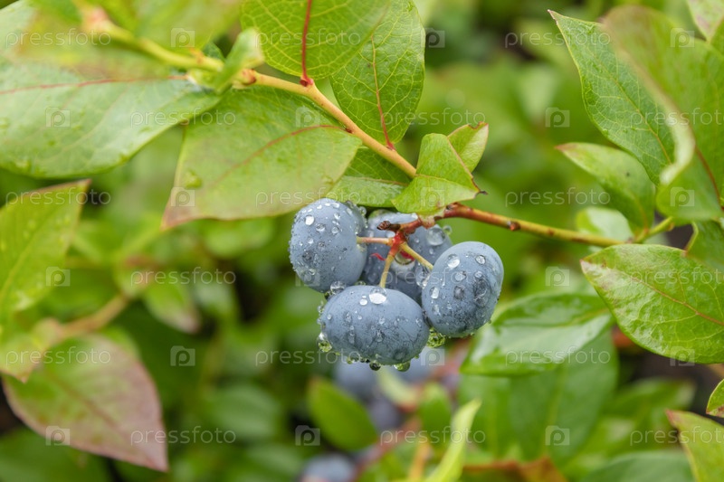 Садовый голубь вкусная, полезная ягода. Vaccinium corymbosum, высокорослый голубь. Голубые спелые ягоды на здоровом зеленом растении. Поле черники, фруктовый сад