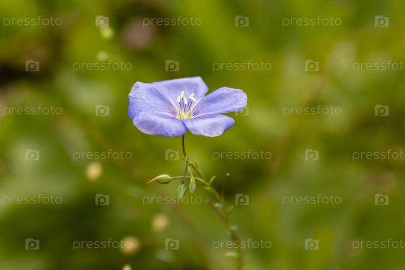 Голубые цветы льна на клумбе, лето, крупный план