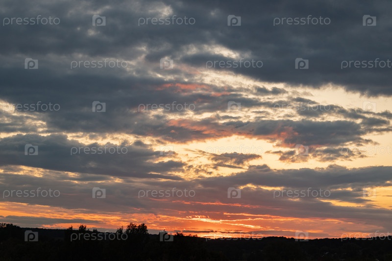 Пейзаж с закатом. Прекрасный вид на яркое красочное небо на закате летним вечером. как фон