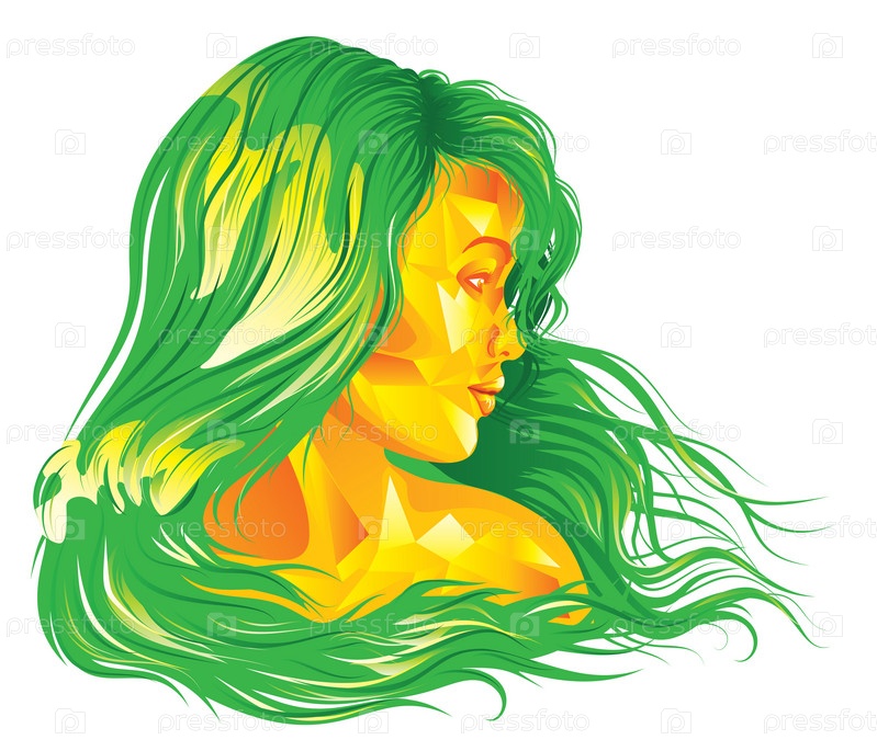 Геометрическая желтая девушка с зелеными волосами