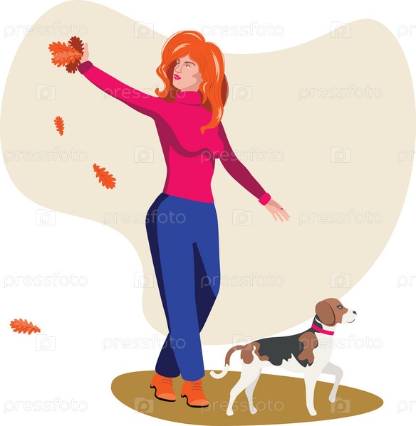Девушка в розовом свитере с биглем