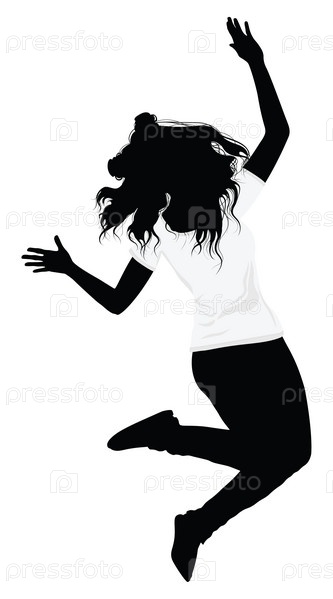 Силуэт девушки в белой футболке прыгает