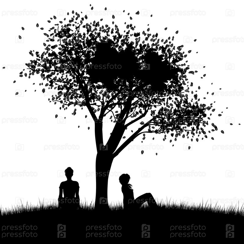 Девушка сидит под силуэтом дерева