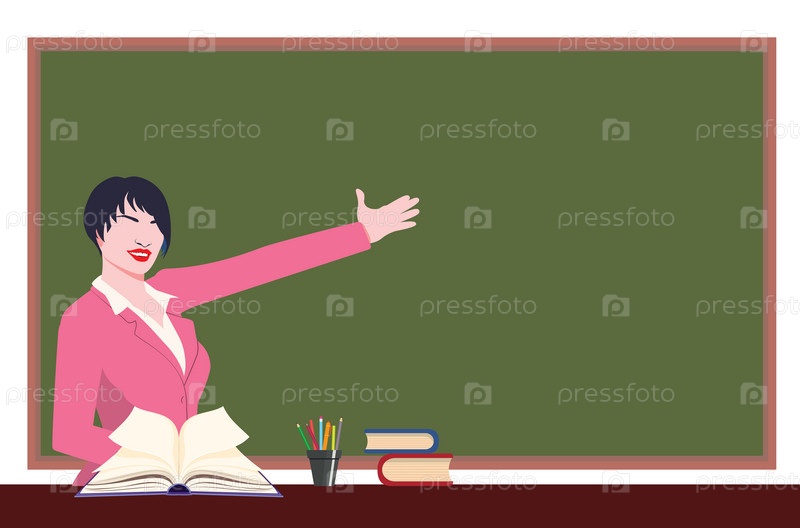Учитель в розовом костюме и доске