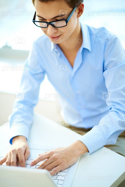 Работающий на ноутбуке молодой человек