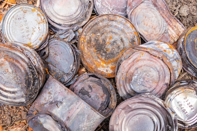 Проблема экологии. Поджаренные измельченные банки готовы к переработке. как фон