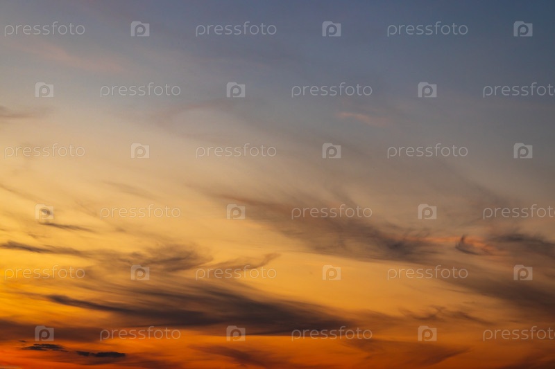 Вечернее небо с несколькими облаками на закате, как фон