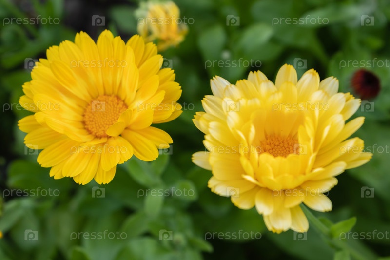 Календула яркая полевая, ноготки, лекарственный цветок календулы. крупным планом
