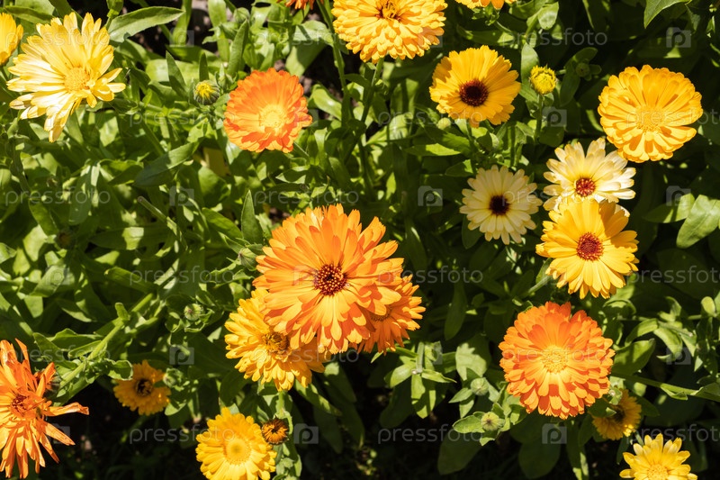 Календула яркая полевая, ноготки, лекарственный цветок календулы. крупным планом