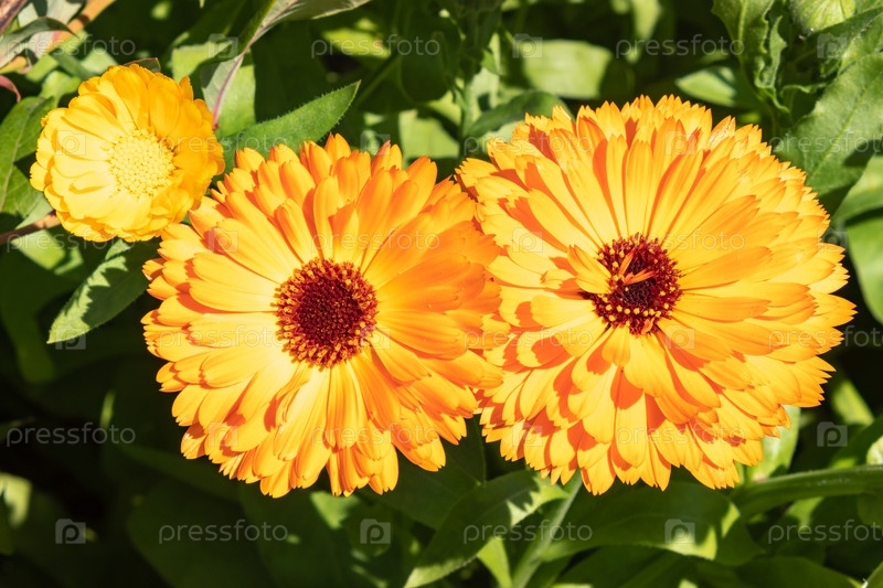 Календула яркая полевая, ноготки, лекарственный цветок календулы. крупным планом