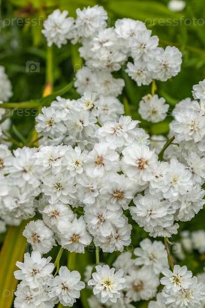 Achillea ptarmica ballerina много белых цветов с зелеными листьями. На участке обильно цветёт. Тульская область, Россия