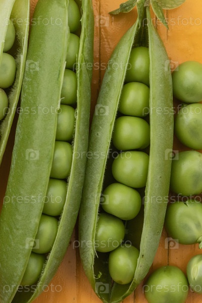 Красивый крупный план зеленого свежего гороха и стручков гороха. Здоровое питание, витамины, диета