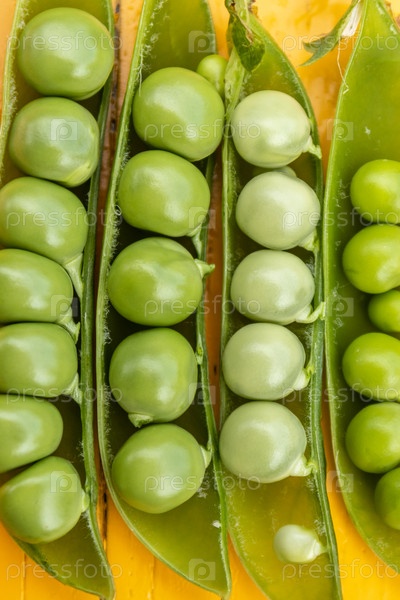 Красивый крупный план зеленого свежего гороха и стручков гороха. Здоровое питание, витамины, диета
