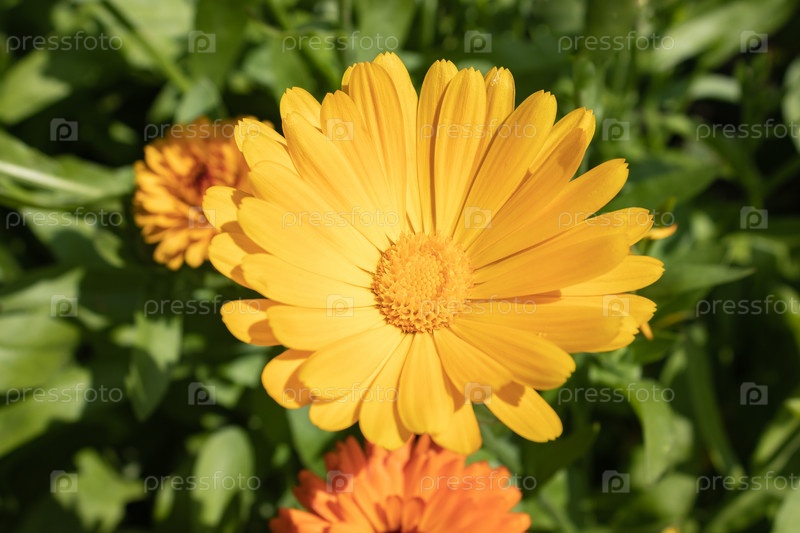 Календула яркая полевая, лекарственный цветок календулы. крупным планом