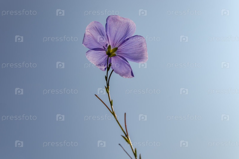 Голубые цветы льна на клумбе, лето, крупный план