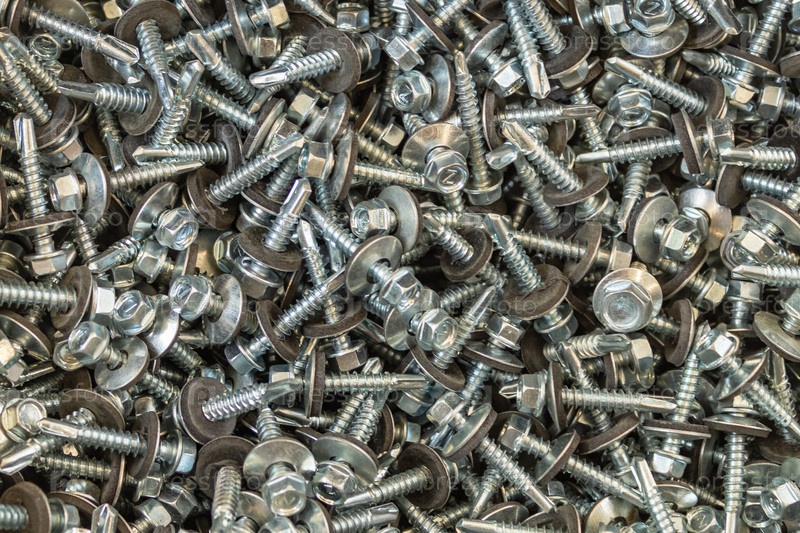 Винты с резиновой прокладкой. металлический винт, стальной винт, хромированный винт, как фон, винт. крупным планом