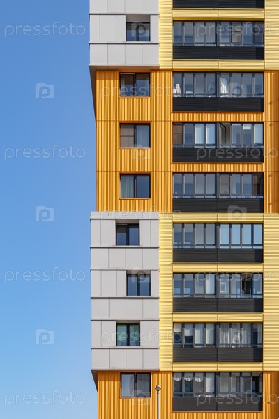 Красивые фасады современного жилого дома. Жилой комплекс 'в лесу'. Москва, Россия