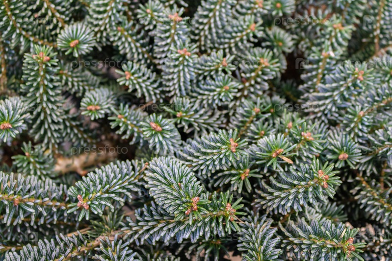 Ветка голубой ели. Красивая пушистая еловая ветка с иголками. Рождественская елка в природе. Ель крупным планом