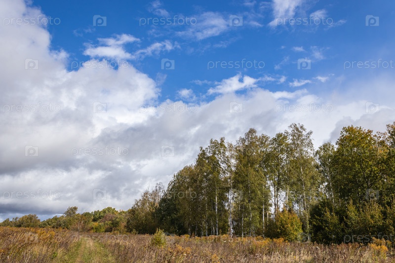 Сельский пейзаж, демонстрирующий красоту Центральной России ранней осенью. Тульская область, Россия
