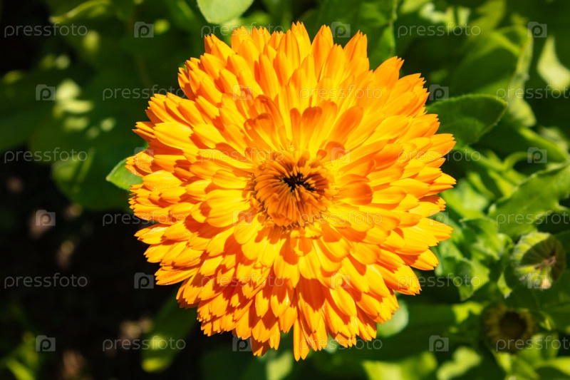 Календула яркая полевая,лекарственный цветок календулы. крупным планом