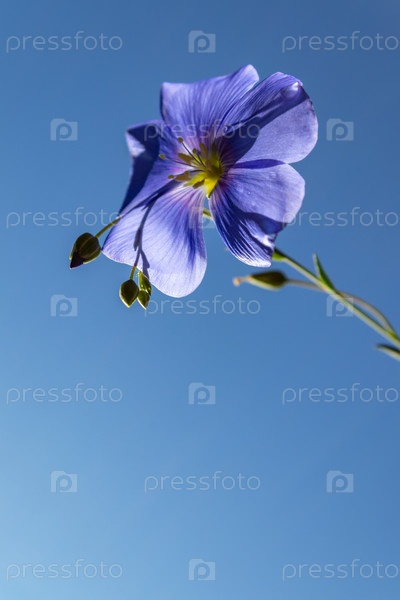 Голубые цветы льна на клумбе, лето, крупный план