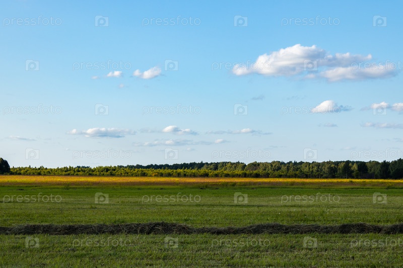 Сельский пейзаж, показывающий просторы Центральной России в прекрасный ясный летний день. Тульская область, Россия