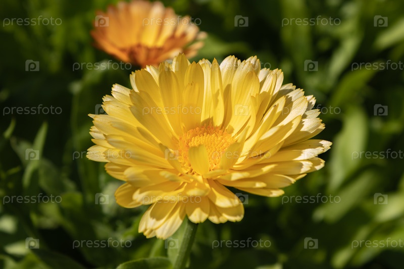 Календула яркая полевая,лекарственный цветок календулы. крупным планом