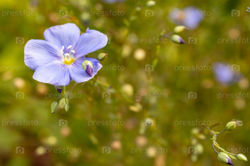 Голубые цветы льна на клумбе, лето, крупный план