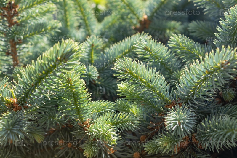 Ветви ситинской ели Picea sitchensis весной. крупный план