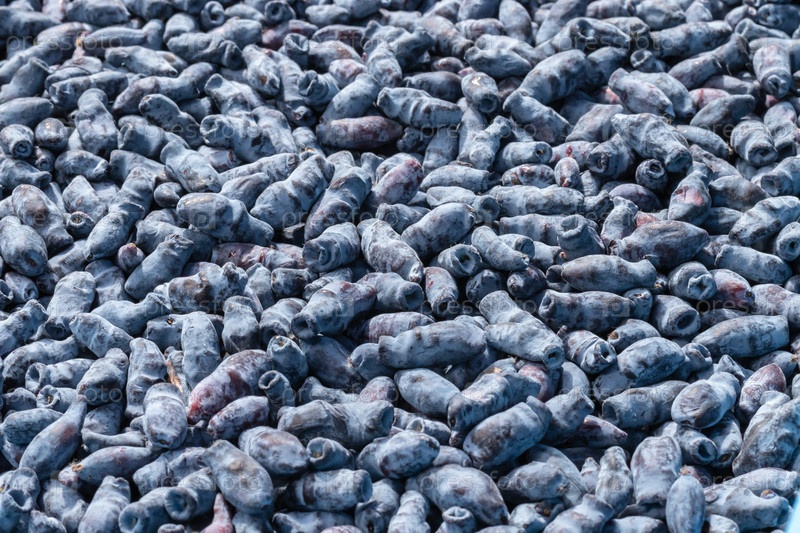 Сочные ягоды спелой жимолости. вид сверху. крупным планом