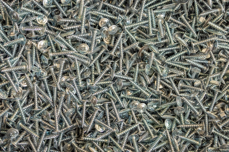 Саморезы с резиновой прокладкой. металлический винт, стальной винт, хромированный винт, как фон, винт. крупным планом
