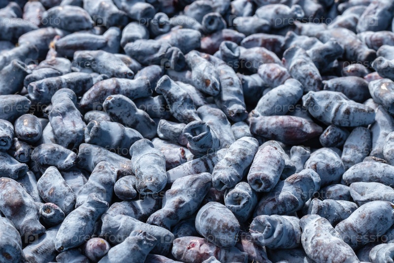 Сочные ягоды спелой жимолости. вид сверху. крупным планом