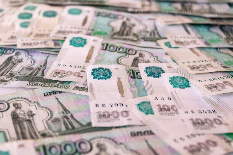 Российский рубль, деньги, банкноты номиналом 1000. Банкноты российских денег, фон, текстура