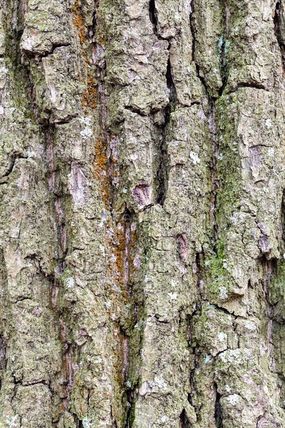 Рифленая и мшистая кора на старом стволе дуба