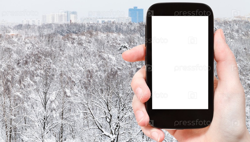 Снежный парк и жилой район зимой