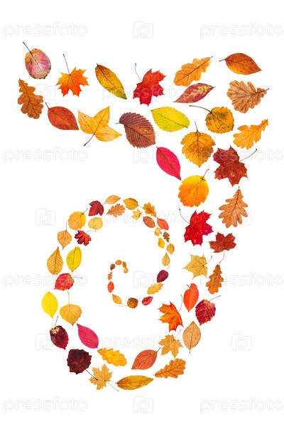 Спираль из опавших листьев, изолированных на белом