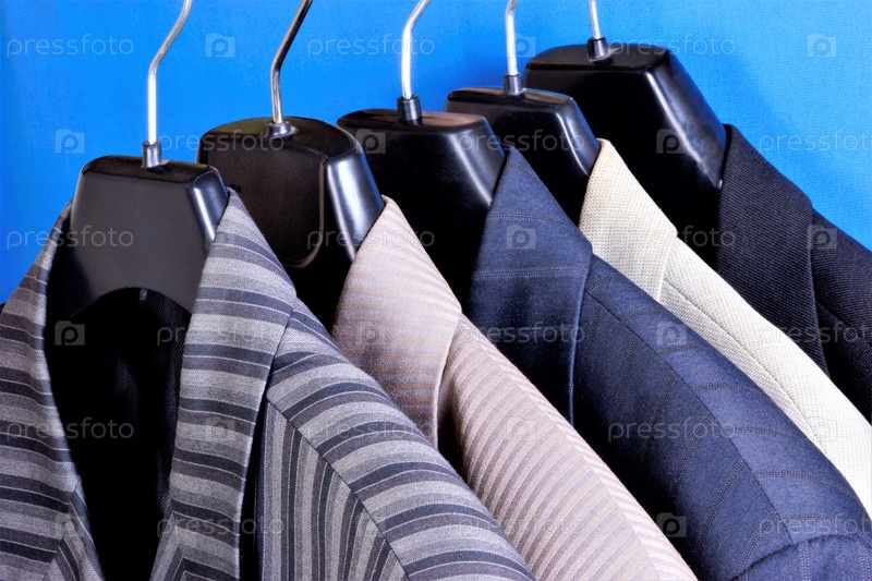 Куртки из мужского костюма на выбор на вешалке в магазине. Пиджак в гардеробе мужчины – это украшение, аксессуар, деловая одежда. Наденьте на свадьбу, выпускной и важное знаменательное событие