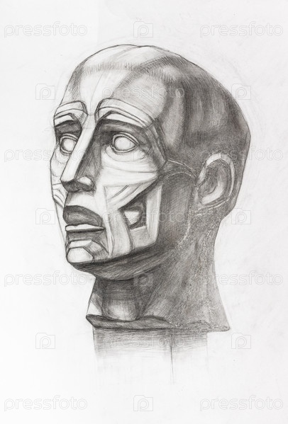 Анатомическая голова экорша, нарисованная карандашом