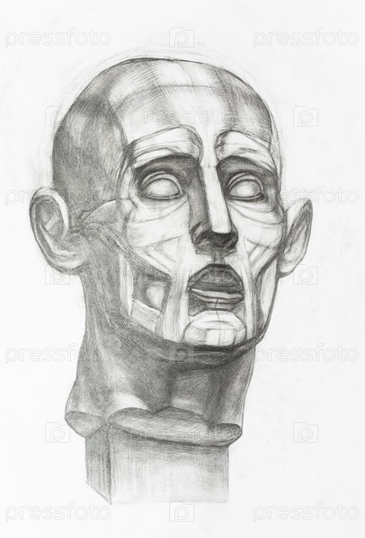 Голова из гипса, нарисованная карандашом