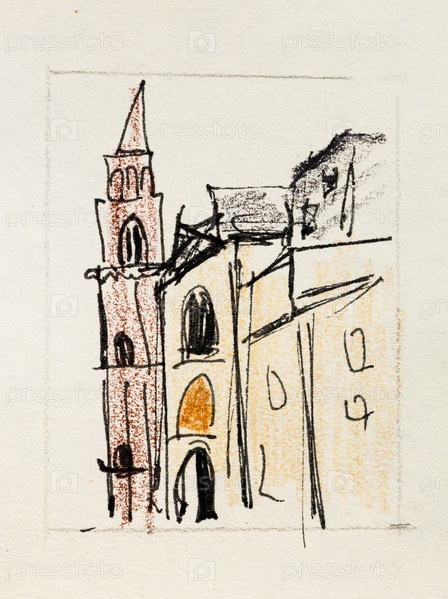 Эскиз итальянского городского пейзажа, нарисованный вручную карандашом