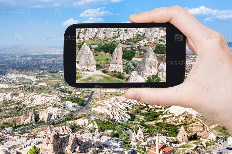 Старинные дома в скалах сказочных дымоходов в Гереме