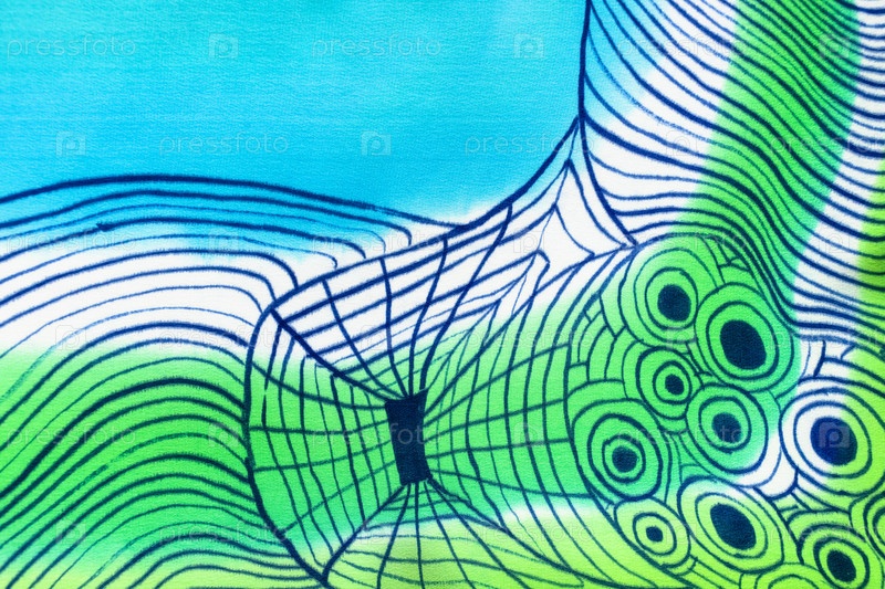 Часть сине-зеленого шелкового шарфа с ручной росписью