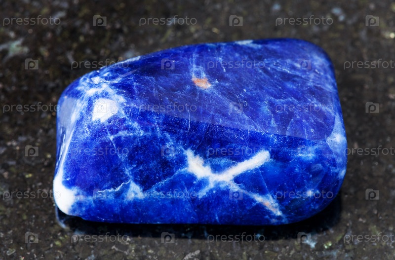 Полированный камень содалит на черном