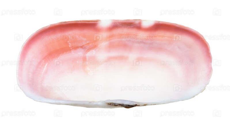 Пустая розовая раковина моллюска, изолированная на белом