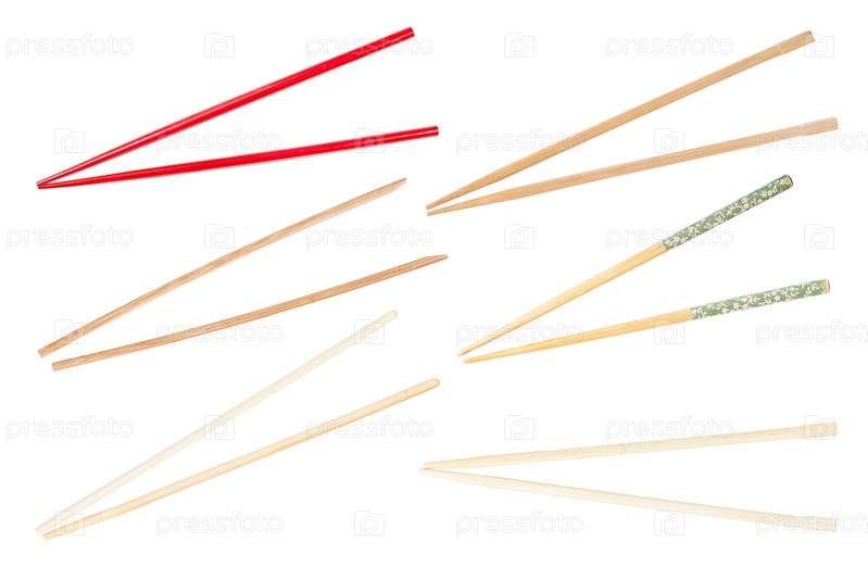 Набор различных деревянных палочек для еды, изолированных на белом