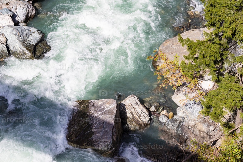 Поток воды в горной реке в Домбае