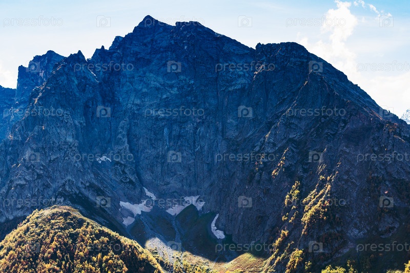 Скала возле курортного поселка Домбай на Северном Кавказе